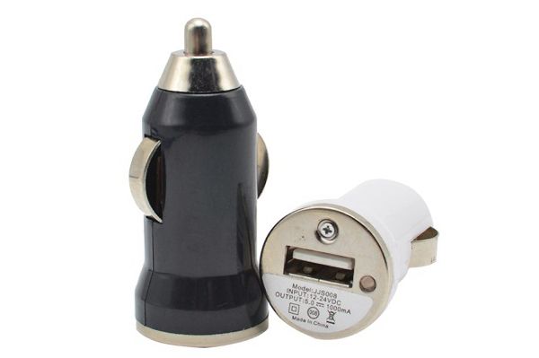 1 amp single port USB car charger capable of 1000 ma output that measures 2 3/16″ L x 15/16″ W x 15/16″ H
