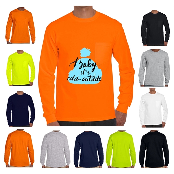100% Cotton Long Sleeve Winter T-Shirt 6.1 oz with Pocket
