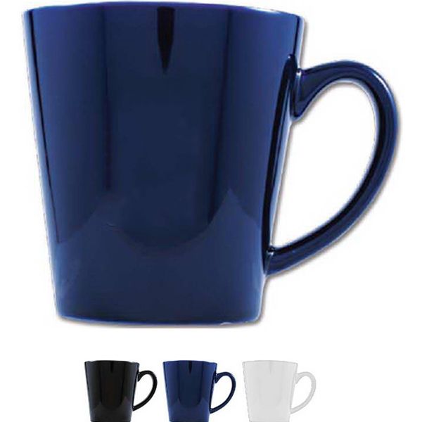 Give an exceptional gift to someone you care about with this sleek and classy coffee mug. Our tapered12 oz. colored ceramic mug with C handle is microwave safe, and hand washing is recommended since extreme temperatures may cause damage or fading to the imprint. Customize each one with a 2′ x 2 1/4″ imprint and hand out at your next convention or tradeshow. This versatile promo product is ideal for businesses within all types of industries.