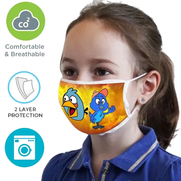2 Layer Kids Face Mask w/ Full Color Logo & Elastic Ear-Loop
