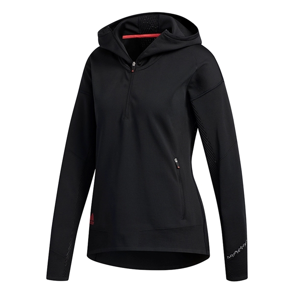 Adidas® Primeknit Layer Sweatshirt. Regular fit is wider at the body, with a straight silhouette. Long sleeves, stretchy, and ventilated. Front zip pockets; half-zip with hood.
