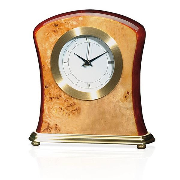 Since we all need to know the time, our Burlwood Clock will never go out of style! This unique piece measures 6 7/8 x 7 x 2 1/8 and will look great in any office or on any mantle or desk. Each piece is made of a naturally occurring material; slight variations may be present. Customize each clock with a laser engraved imprint, in one location. Perfect for displaying a brand name, logo or message. Batteries are included.