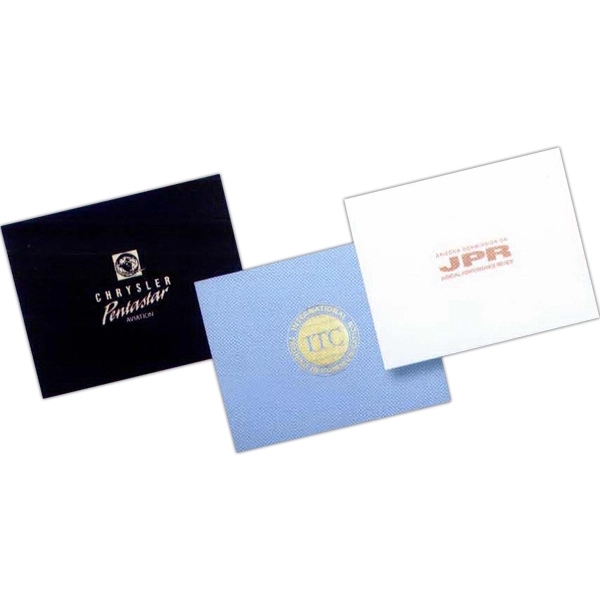 Custom presentation folder. 9 1/2″ x 12″. Die cut to hold either 8″ x 10″ or 8 1/2″ x 11″ certificates. 90# cover.