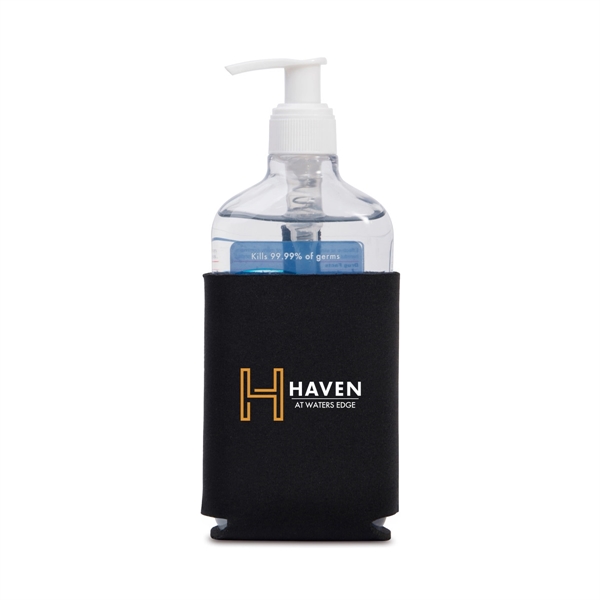Display your brand while promoting healthy habits with this multi-use neoprene sleeve. Integrated pull tab allows you to easily slide the sleeve onto a bottle of hand sanitizer or a 12 Oz. aluminum can. Bring the sleeve with you anywhere and use as a can cooler, accommodates 12 Oz. aluminum cans. The neoprene design is foldable and can be easily stored when not in use. Dimensions when flat: 4L 4.86H .25W. Bundle includes item #254, 10.2 Oz. Hand Sanitizer with Pump. Kills 99.99% germs.