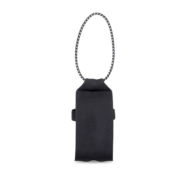 Portable hand sanitizer holder easily attaches to backpacks, tote bags and more for quick accessibility while on-the-go. Hook and loop closure and elastic strap will keep your 2 Oz. Hand Sanitizer bottle secure. Bungee cord allows for easy attachment to other items. All sales final. Pricing appearing on the website supersedes any other published prices. Due to high demand, items may take up to 48 hours to ship after purchase order is received.