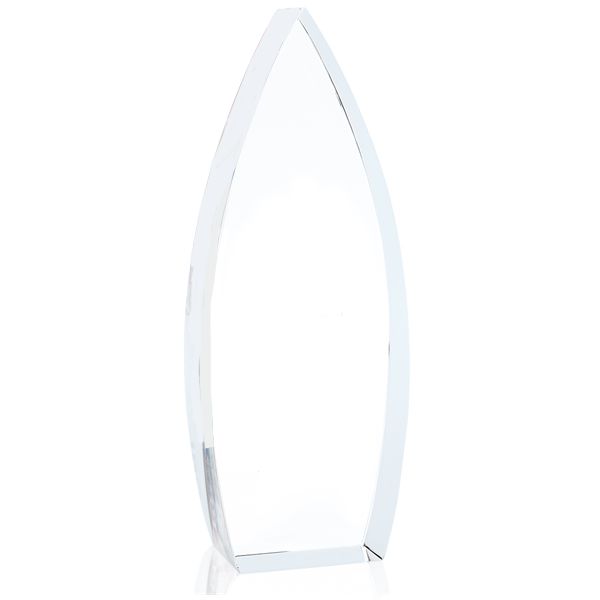 Celebrate a sporting victory, recognize the meeting of a business sales of marketing goal or acknowledge great works for social or charity causes with these handsome awards. Reach for the stars with the Sky Bound award. This 2 3/4 x 7 1/2 x 1 3/8 optical crystal freestanding trophy has a spearhead shape with a flat face. Clear design. Take advantage of our signature britePix® imprint method to showcase your school, sports team, organizational or company name, logo, emblem or message to create an award that will be treasured for years to come.