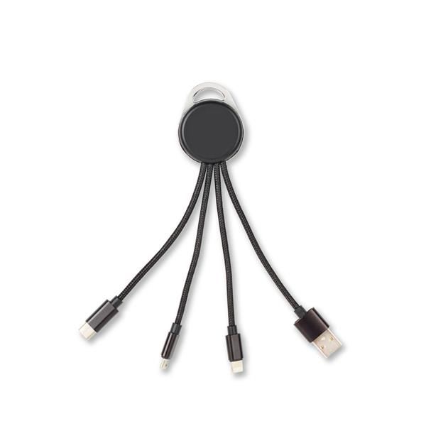 3-in-1 Light Up Logo Cable features with a USB type C tip, Micro USB tip and compatible adapter for Apple iOS devices. This item must be lasered to reveal the LED light up function. Supports 2A Charging Cord length: 4″. Resealable Bag Dimensions: 4″L 7.5″H 0.38″W.