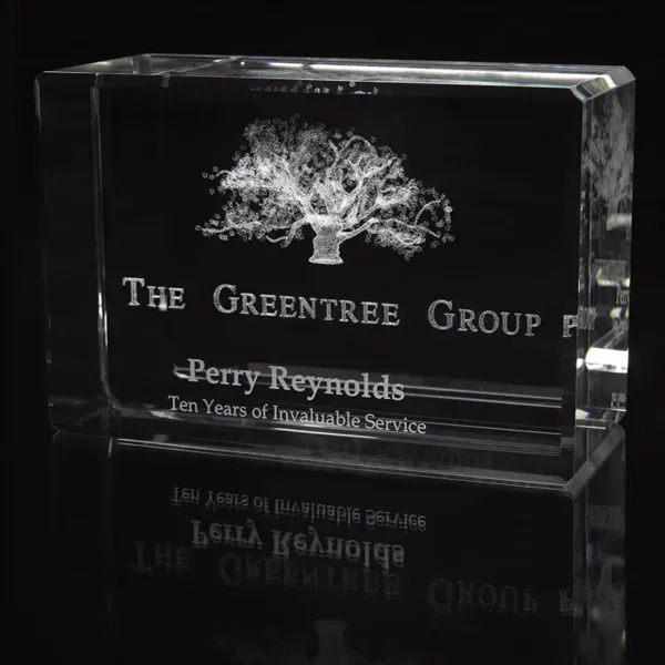4 5/8 x 7 x 3 1/8 optical crystal large block award that can be oriented vertically or horizontally.
