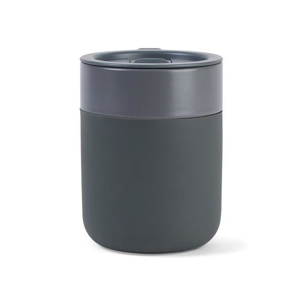 Start every morning smart and reduce your eco-impact with this 12 oz. Porter Mug! Crafted with durable ceramic and wrapped in protective matte silicone, this reusable mug is a high-quality replacement for disposable plastic or metal mugs. It’s also BPA-free, dishwasher safe and microwave safe. The wrap can be customized with a brand name or logo using a one-color, one-location print or a one-location laser engraving. Get your promotional message into all the right hands with every sip!